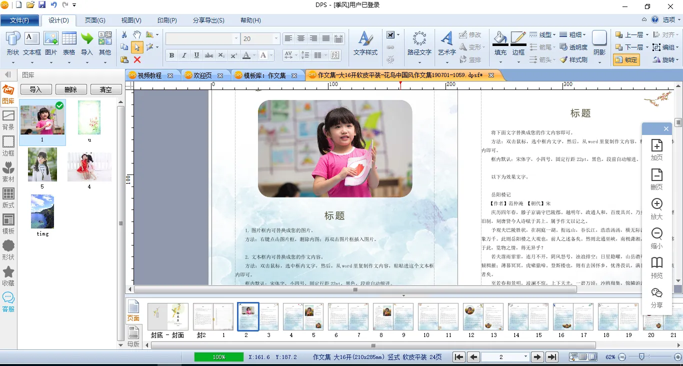 替换掉全部的文字和图片之后,一本作文集就完成了,整个排版过程仅需30分钟,是不是非常简单呢?