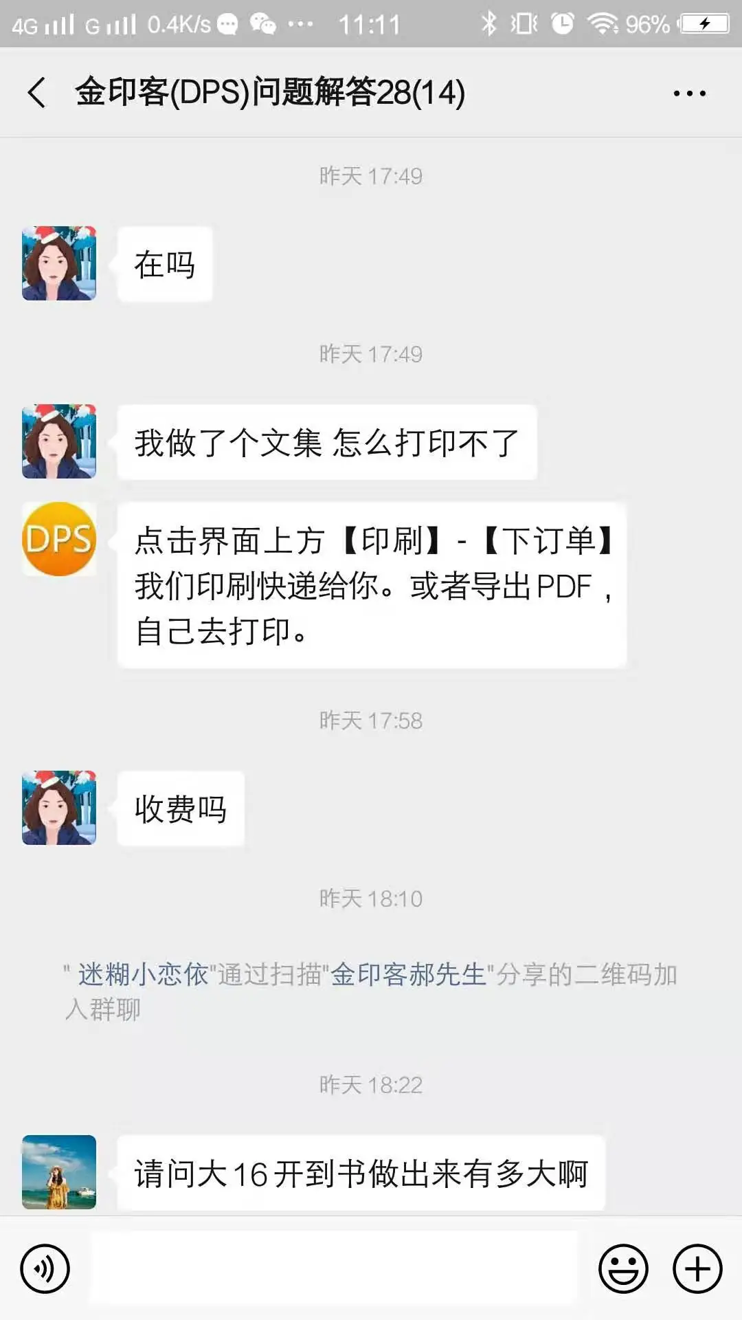 马上就到9月1日了,又是一年开学季,最近金印客的客服群里,出现了作文集的咨询高峰,有好几位小学生的妈妈在群里咨询作文集的相关事情,河北唐山的网友“小乖丢”要给儿子出一本小诗集,咨询排版和印刷的问题,有的还咨询价格问题,尽管软件上这些问题都有,便客服人员还是不厌其烦地为他们解答。北京西城的网友“欣”咨询打印的问题。还有的咨询字号大小、行距等问题。
