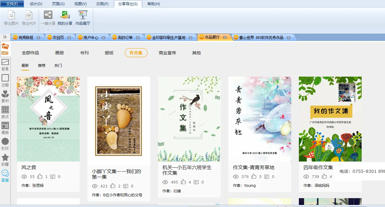 在金印客DPS排版设计印刷分享软件的“作品展厅”里,有很多客户的作品。
