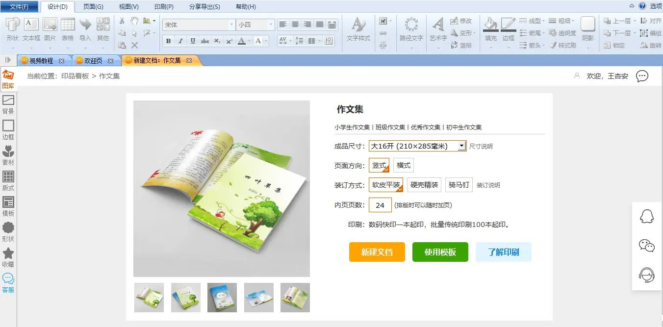 万事俱备,只欠东风。那么,作文集的内容都准备好以后,排版印刷这样的事该如何做呢?家长们和孩子们都不要急,这里有一款叫金印客的软件,软件里有很多的作文集模板,还有很多用户用了软件后分享的作品,更重要的是,这款软件专门是针对设计小白开发的,word的界面,操作起来比word还要简单。大人、小孩不懂设计,都可以用它来进行排版。这是金印客软件的界面。