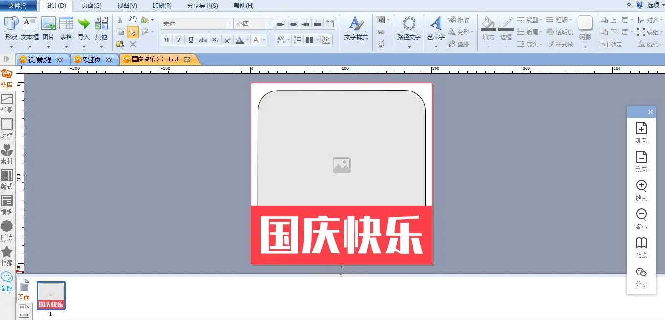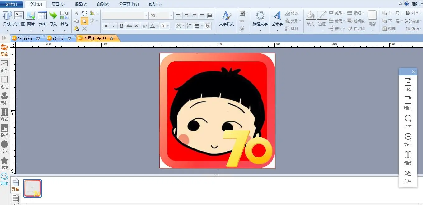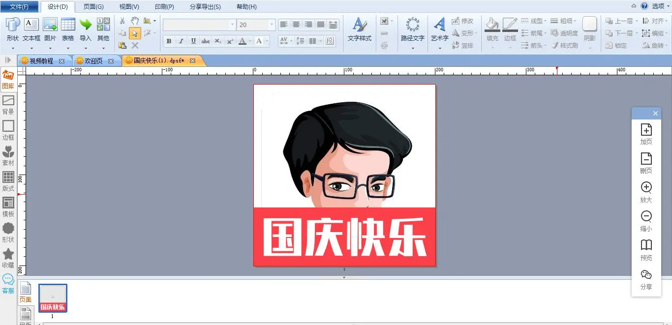 右下角除了飘扬的红旗外,还可选择代表见过70周年的金色“70”字样、喜庆的“国庆快乐!”横幅、和圆形五星红旗logo。