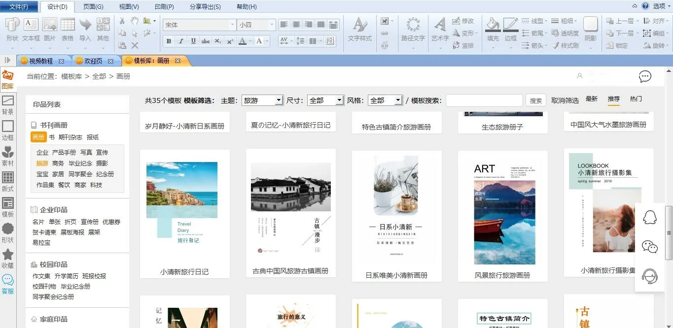 用金印客DPS排版设计印刷分享软件 制作旅游相册非常方便,软件里有丰富多彩的模板库,还进行了分类,模板分为校园印品、企业用品和家庭用品,包括书籍、期刊、报纸、画册等方面的几十大类,各种模板应有尽有。你只需挑选到一款自己心仪的模板,在模板上替换图片,更改文字就可以了。其实有一些其它的平台或软件,使用模板是要付费或者是要充值成为VIP会员的。