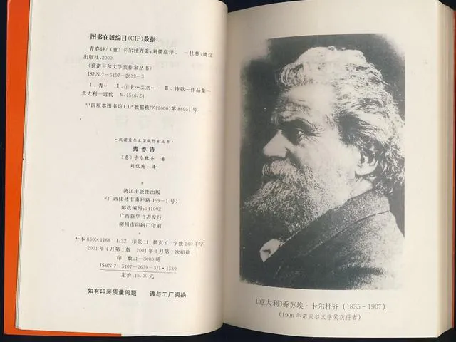 这是意大利诗人乔祖埃卡尔杜齐的诗集,作者也是凭借这部诗集,获得了1906年的诺贝尔文学奖