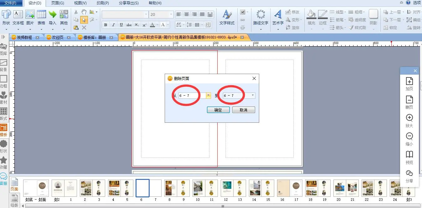 如图界面显示,删除的是6-7双页,而非第6页单页。