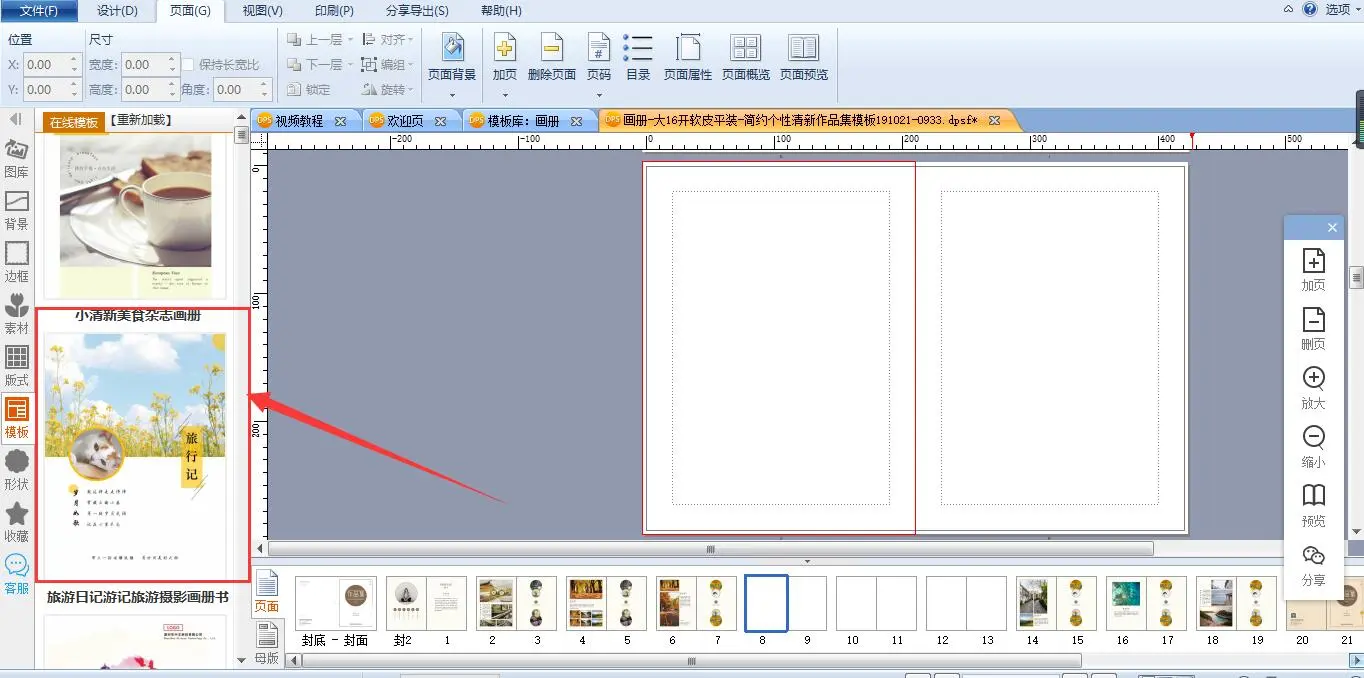 点击选中的模板,打开页面,则左边模板页面的内容就会对应到导航栏所指示的当页编辑页面上来。