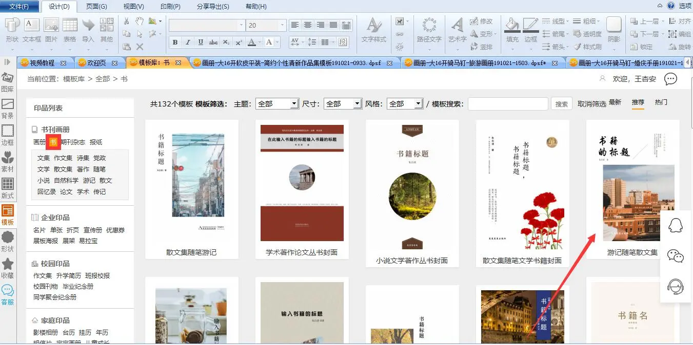 我们打开模块,在编辑栏左侧点击“书”,就会看到很多的书籍模板,随手打开一本书籍模板。