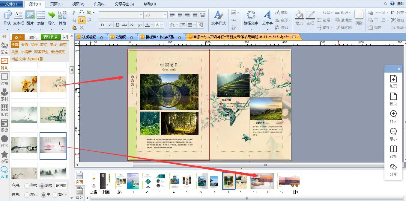 金印客DPS排版设计印刷分享软件里有着大量的背景库、素材库、文图版式、边框、形状等,因此装饰作品集非常方便。