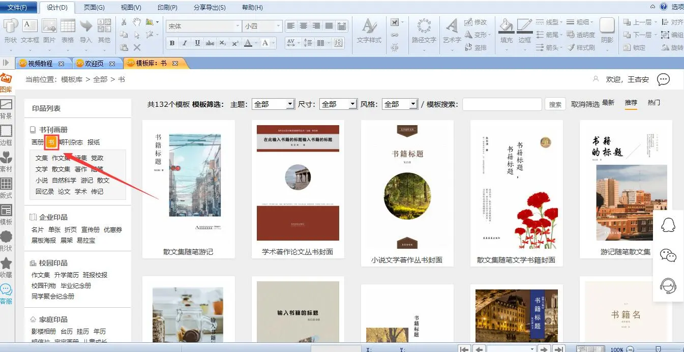 点击左侧目录栏的“书“,左侧就会出现许多书的模板。