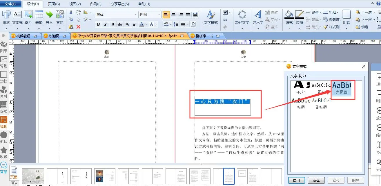 点击工具栏的”文字样式“,选中一个标题样式设置合适的标题格式。