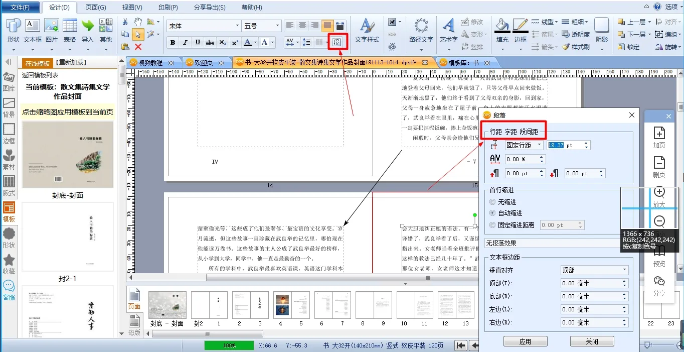 这样,一本书的封面封底、扉页、版权页、目录和正文的一个章节就排完了。