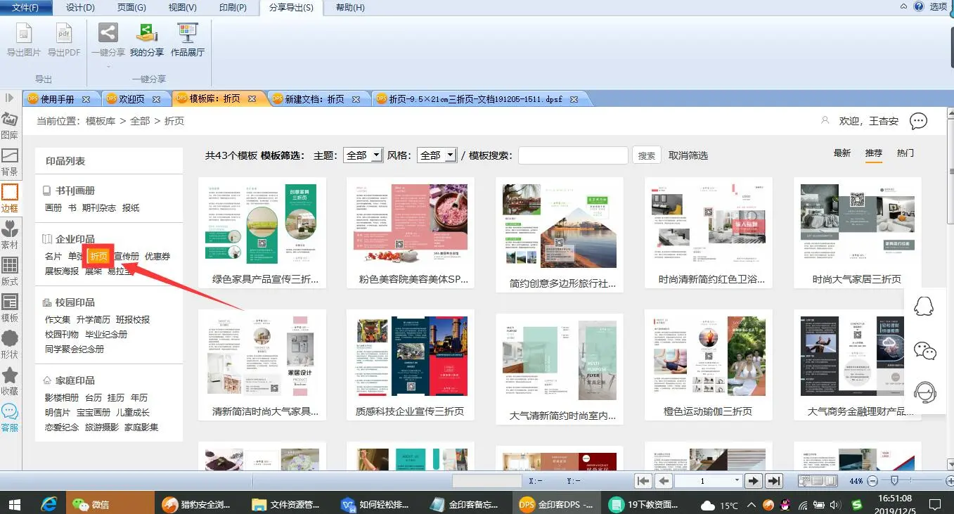 2、点击编辑栏左边的折页,则会看到很多的折页模板。