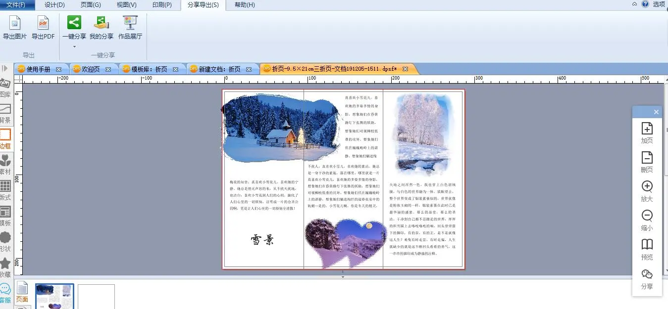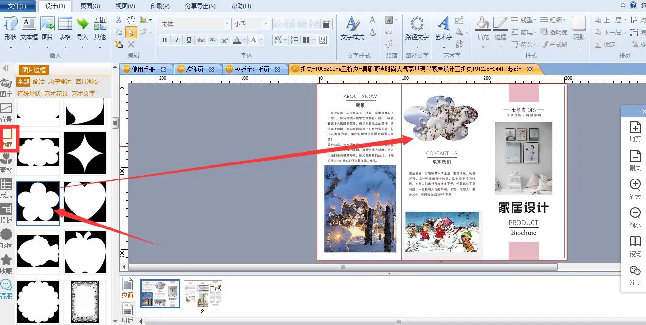 6、在折页上自由排版图文,并且将图片在左边的边框进行装饰。