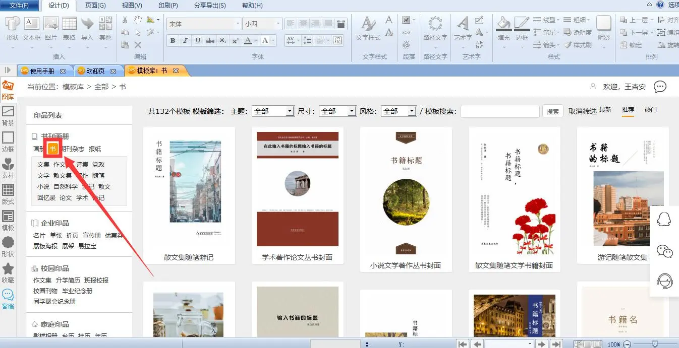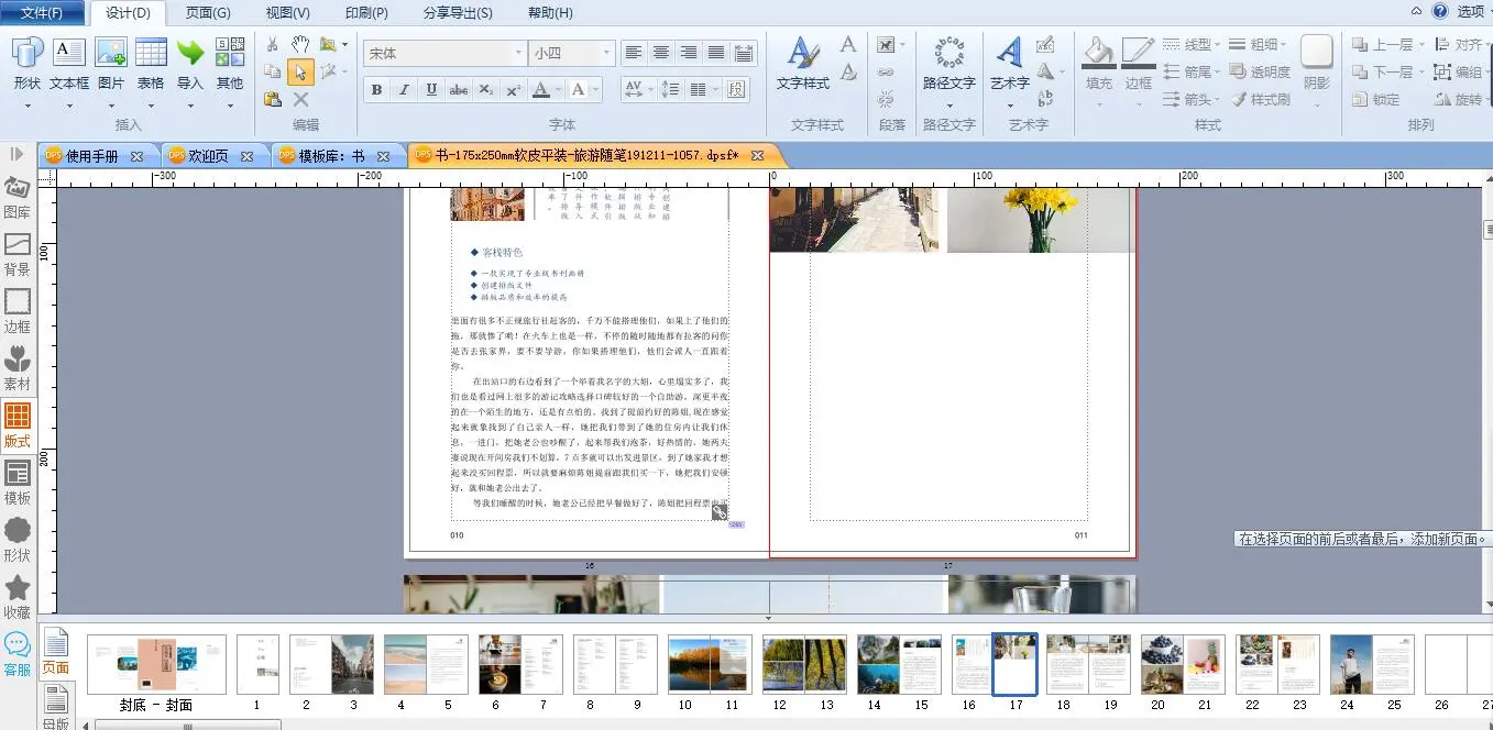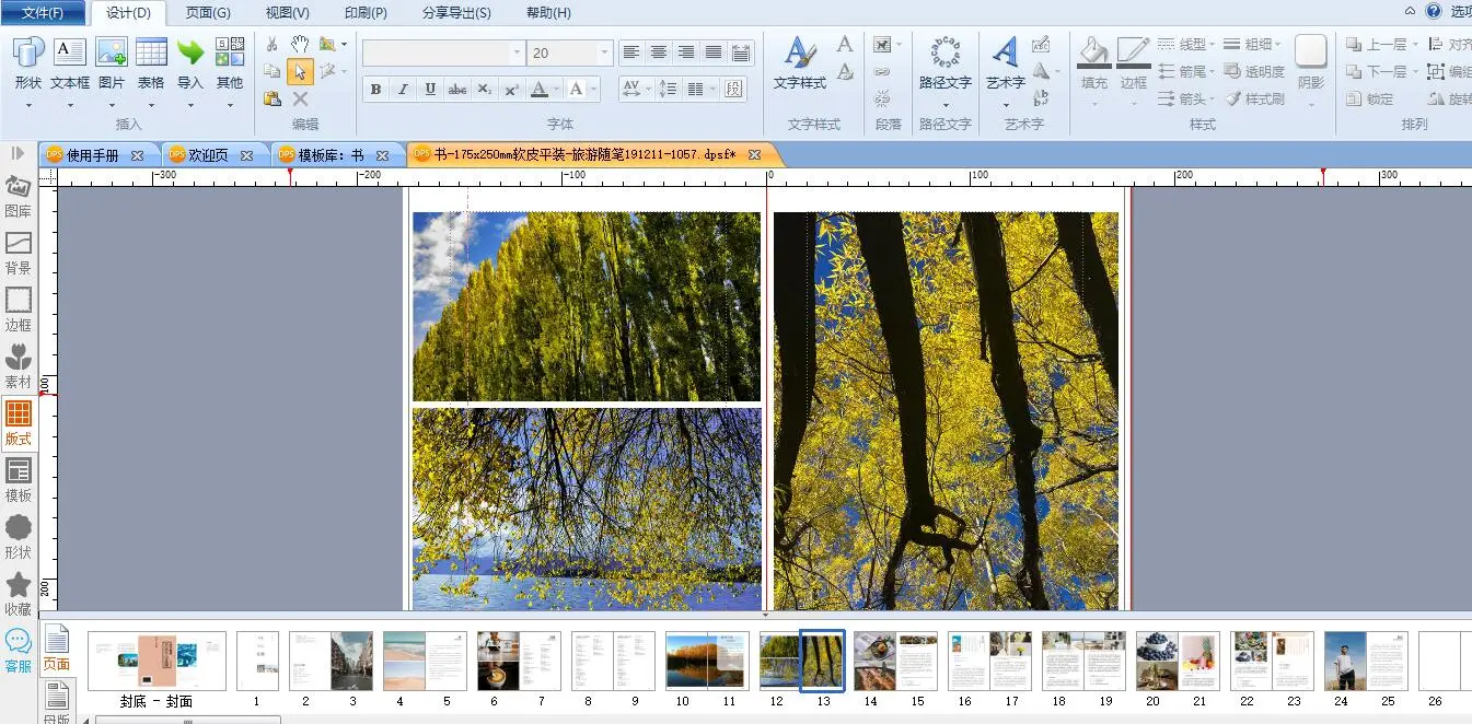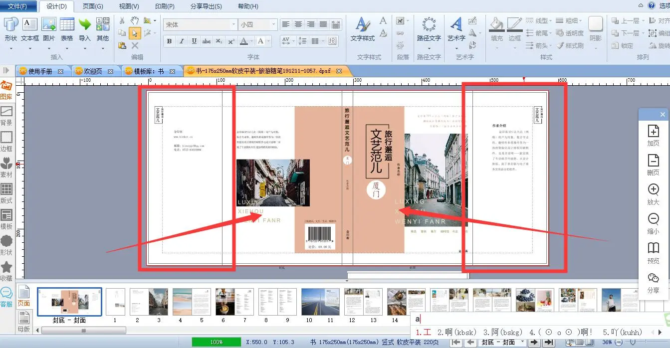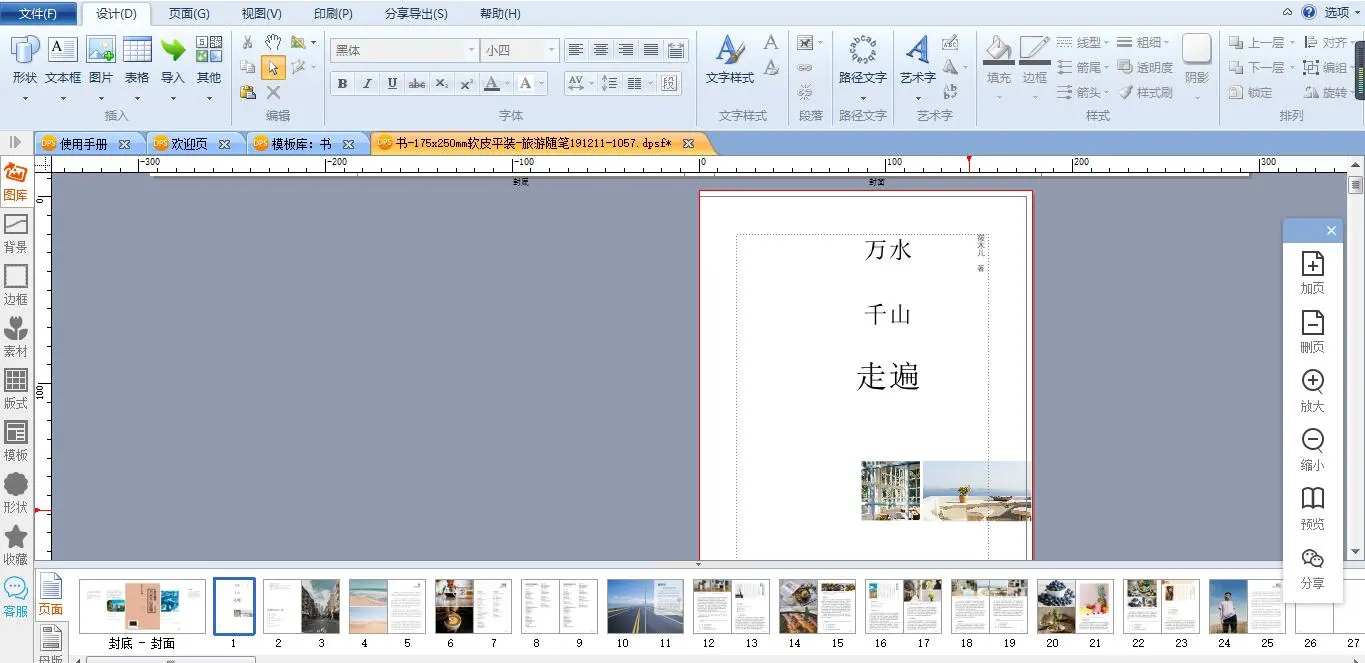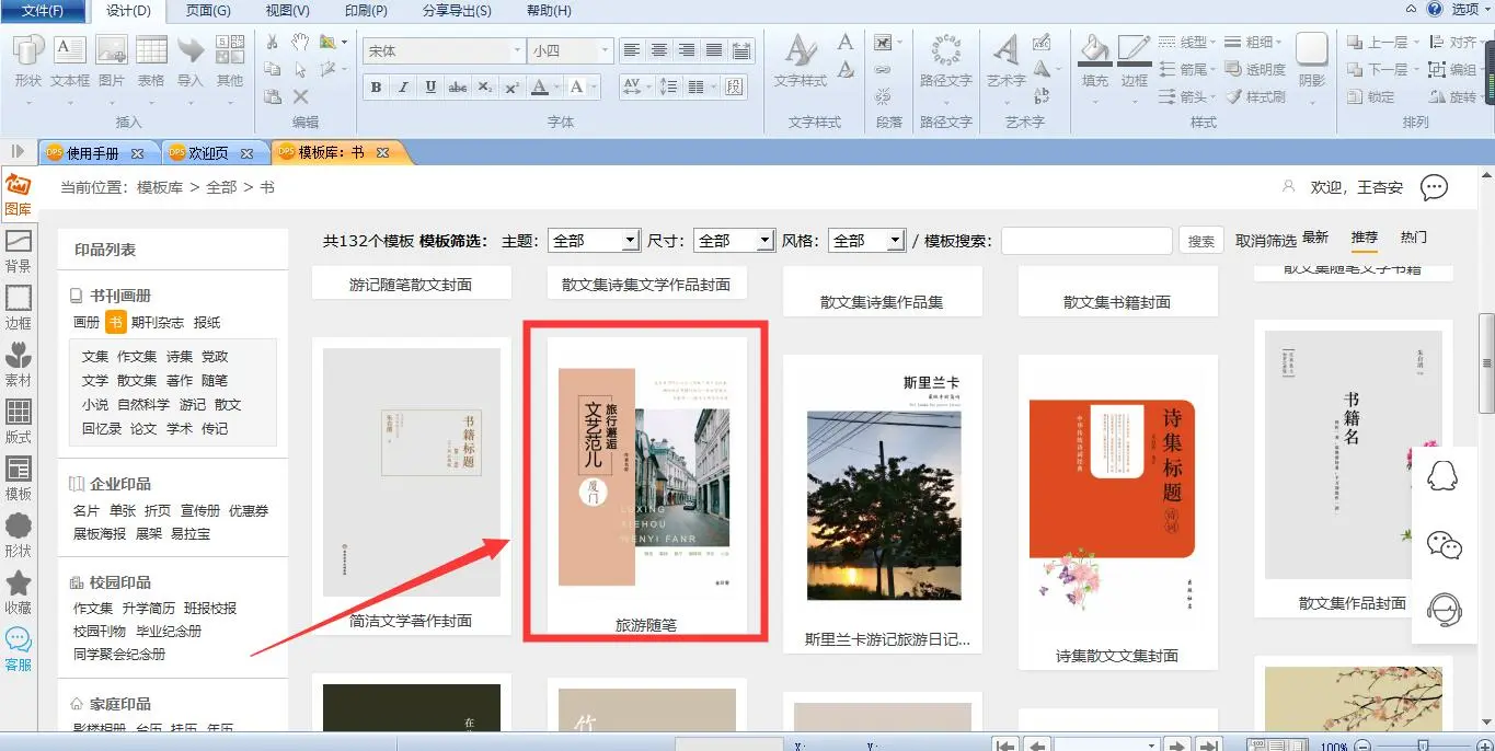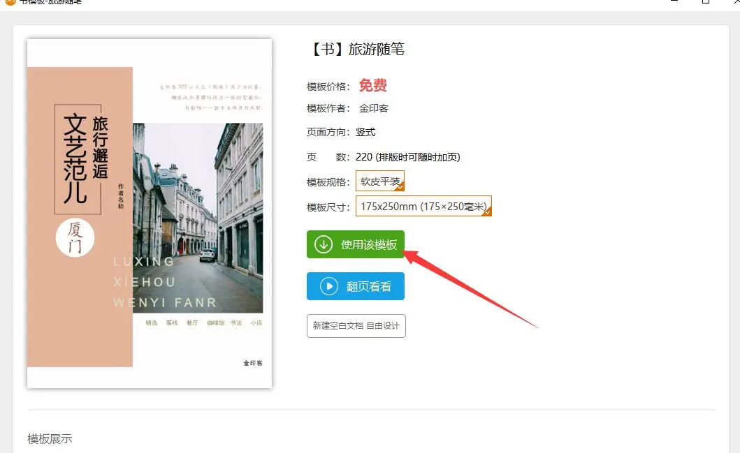 首先选中一款心仪的书籍模板,这模板符合游记的特点。