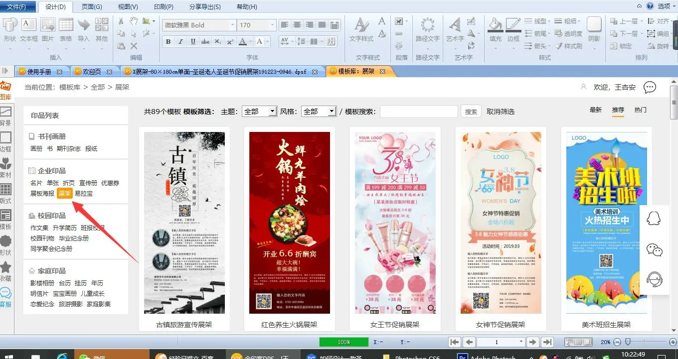 步骤二:点击左侧的企业用品——展架,可以看到右侧有很多的展架。