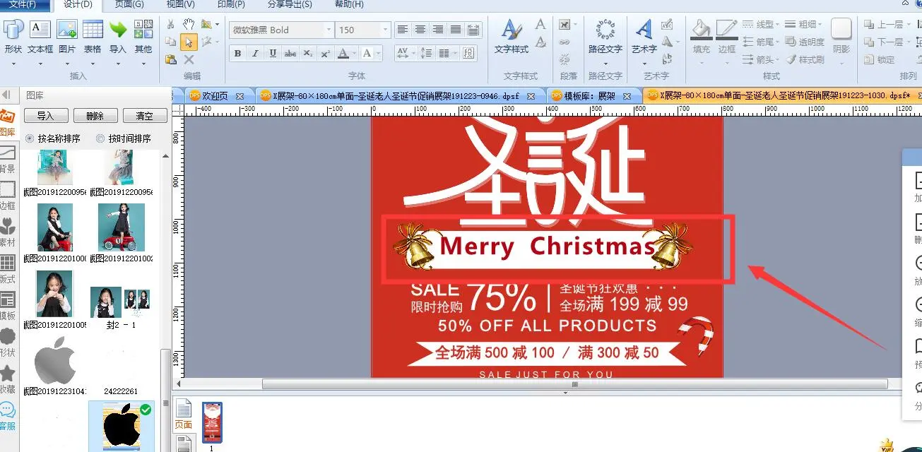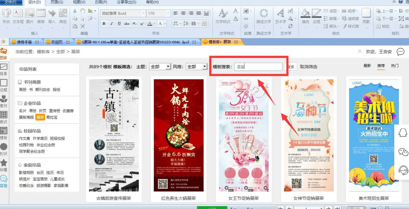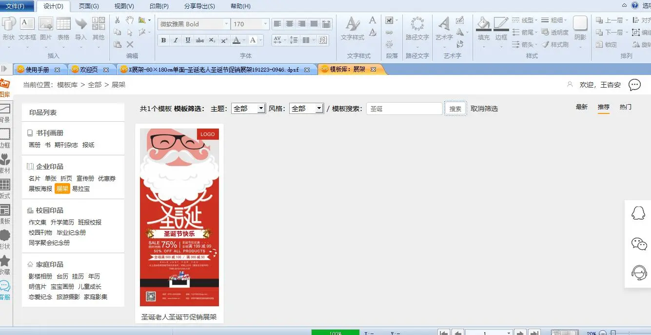 步骤三:我们在模板搜索里输入“圣诞”,圣诞节的展架模板就出来了。