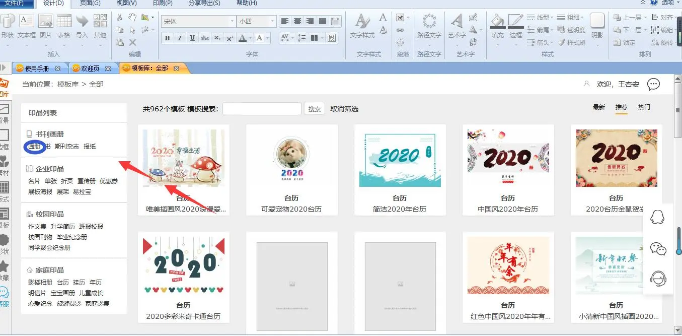 点击左侧的“画册”,可以看到右边出现了很多画册。