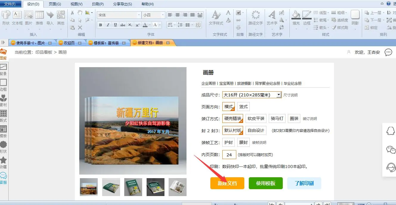 在电脑上打开DPS软件,新建一个画册文档。