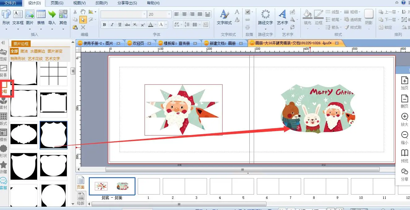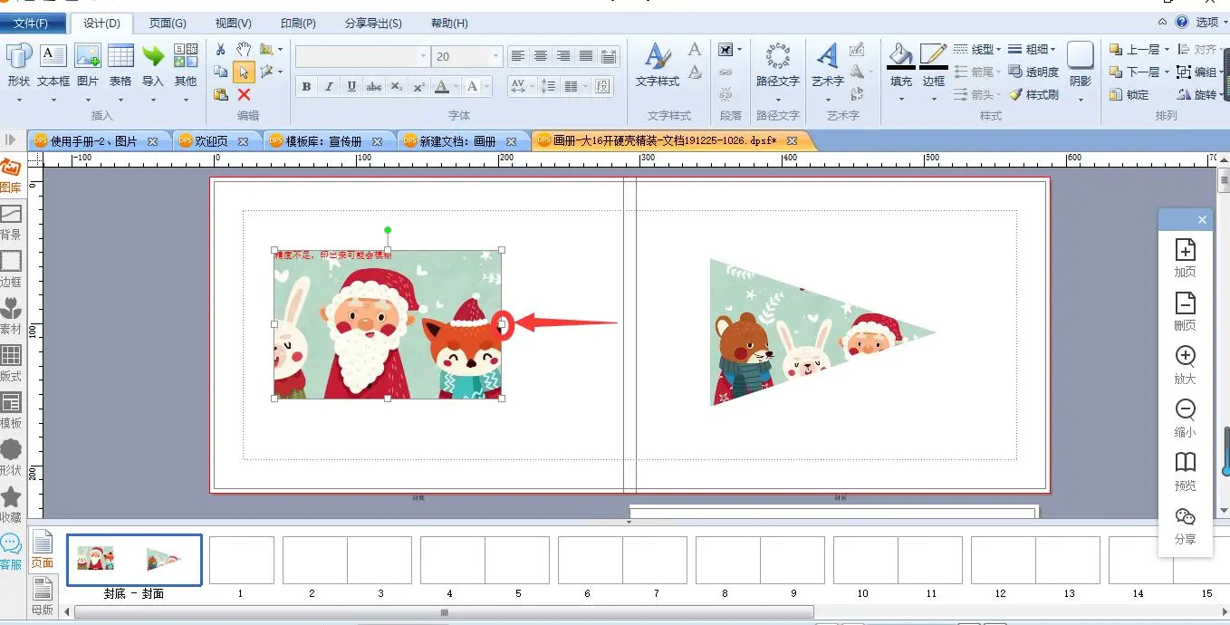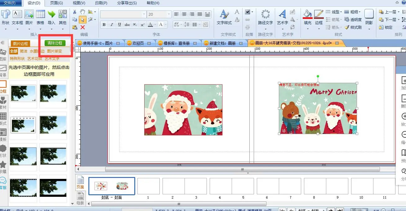每个图片都带有一个图片框,可以通过拉边线来裁切图片。