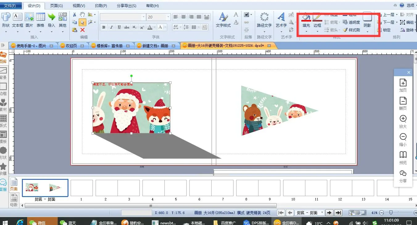 点击界面上方工具栏的【填充】【边框】【阴影】,可设置图片的样式。