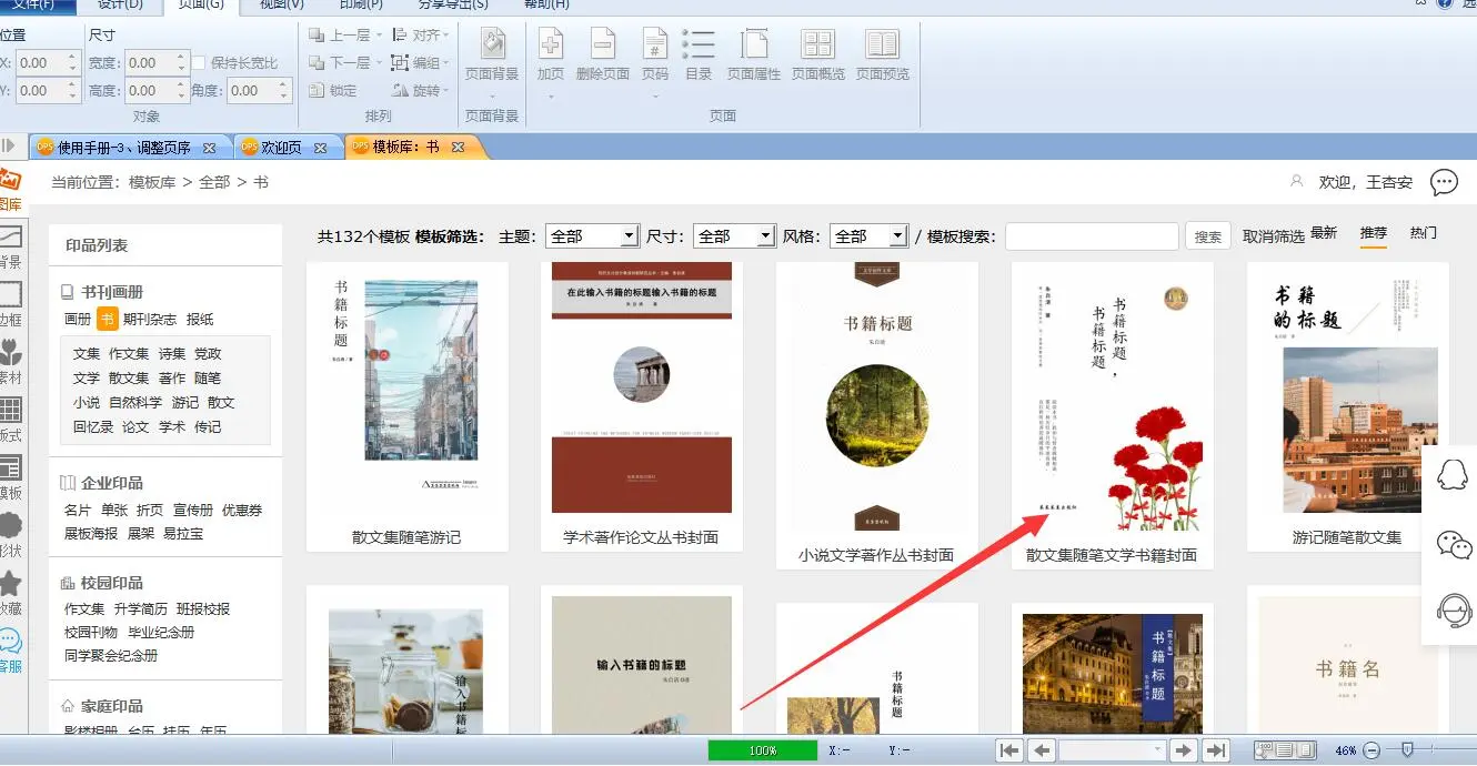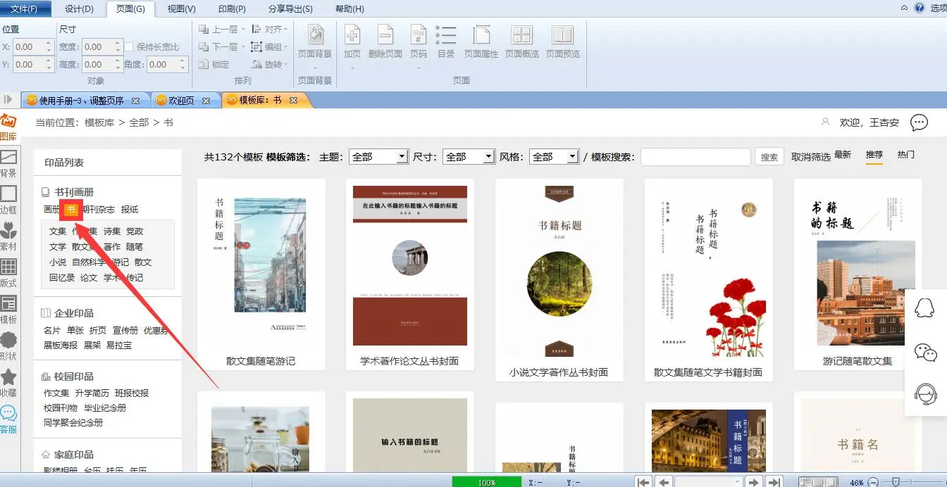 在模板库的左侧点击“书”,会看到界面上出现很多“书”的模板。