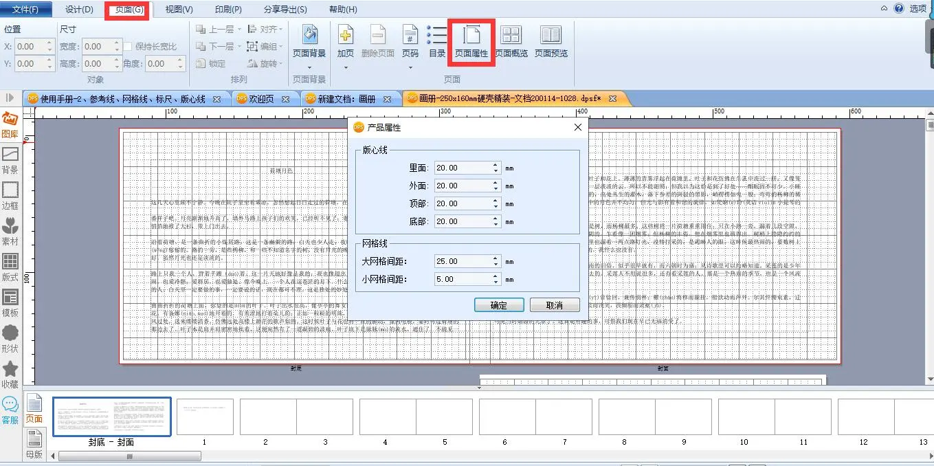 我们点击工具栏的页面—页面属性,可以看到出现了产品属性对话框。