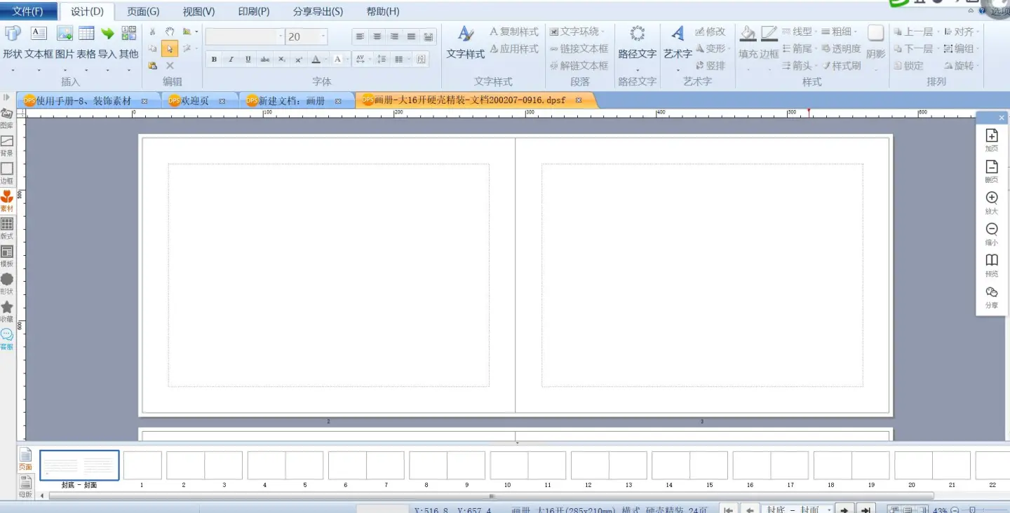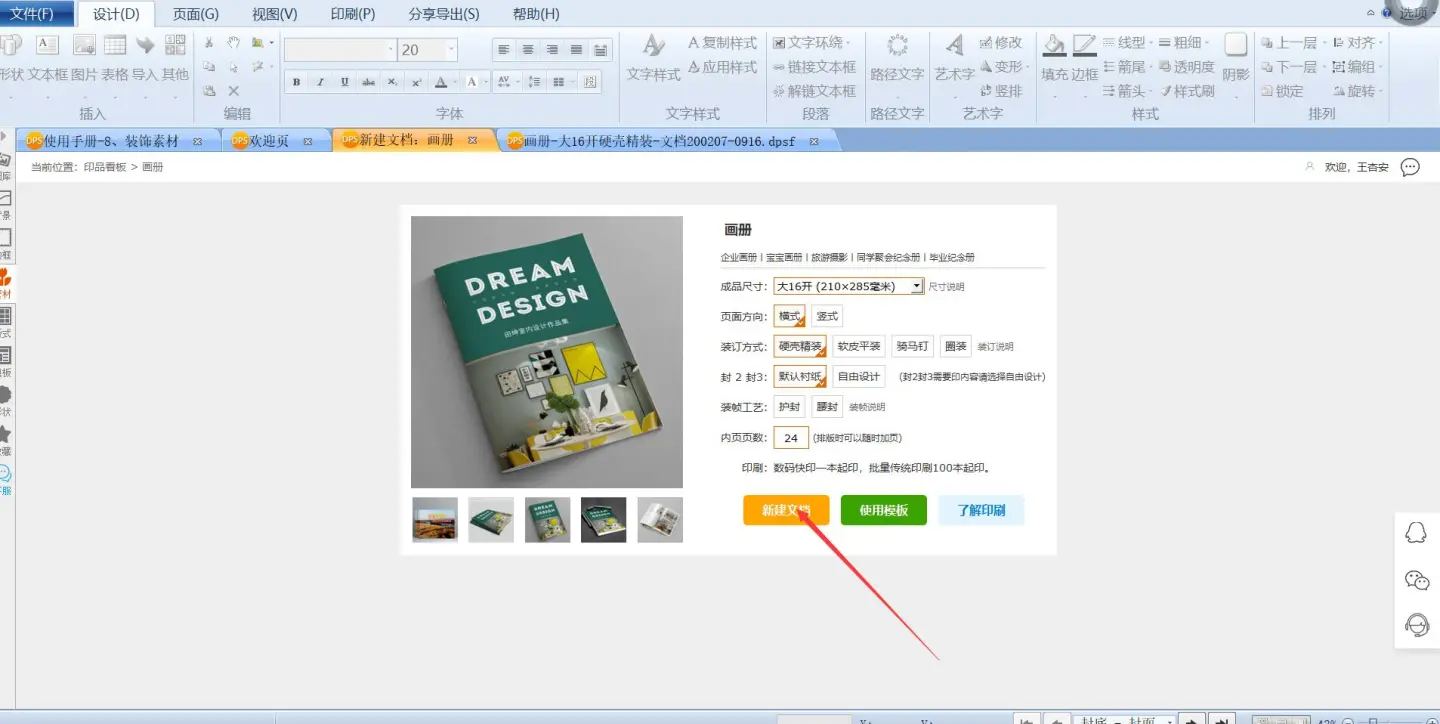 在电脑上下载DPS排版软件,新建一空白画册文档。