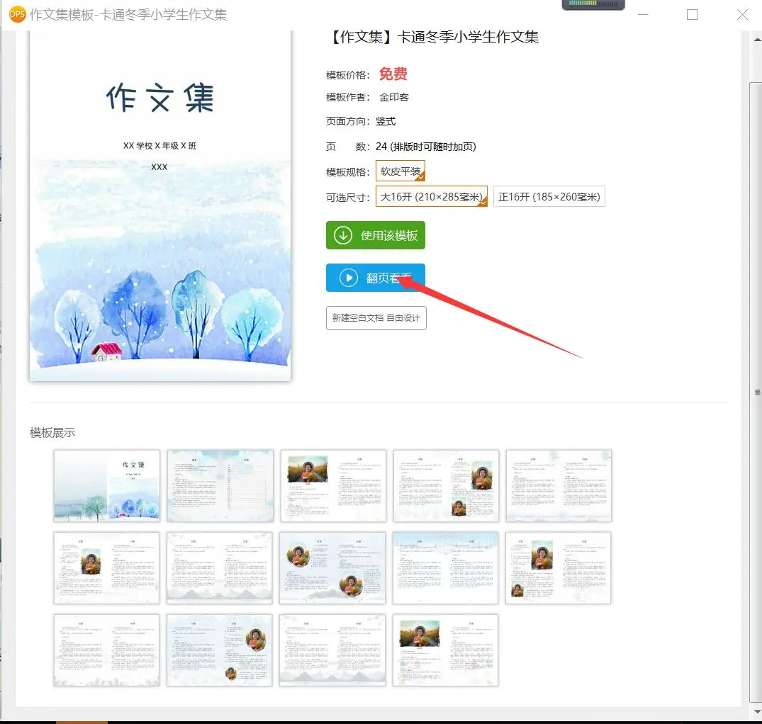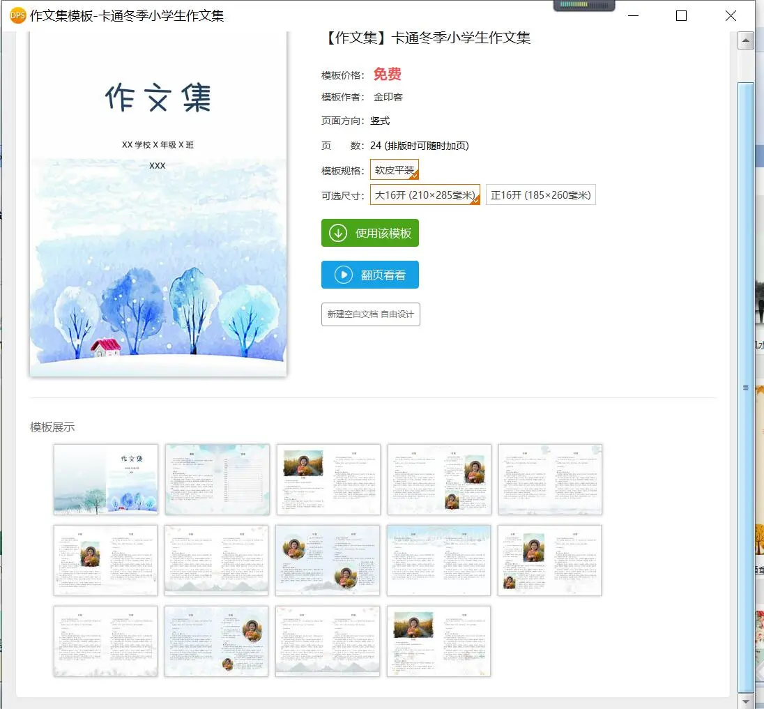 点开选好的作文集。出现作文集编印的一些基本信息以及模板内页展示。