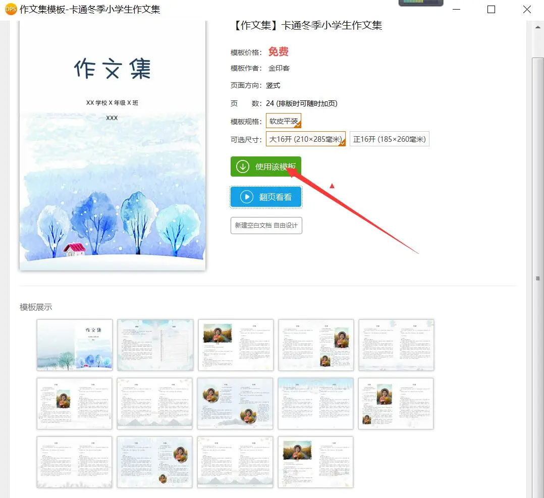 我们再回到作文集模板编印信息页面,点击“使用该模板”,我们打开了此模板。