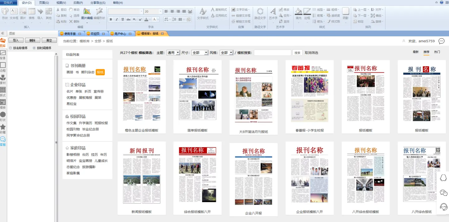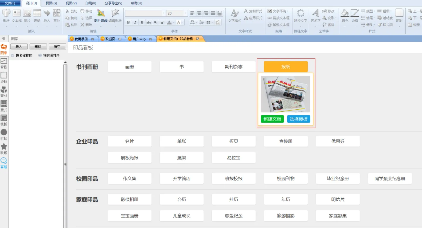 1、打开软件,新建文件,选择 书刊画册 —— 报纸 模板。http://www.kinker.cn/prod/newspaper