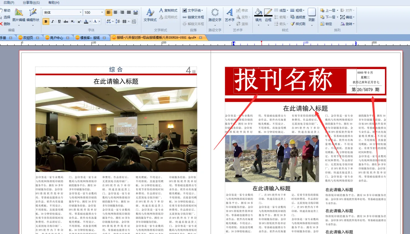 用排版软件自助编辑报纸实例,会刊、期刊、内刊、校报、班报等模板套排