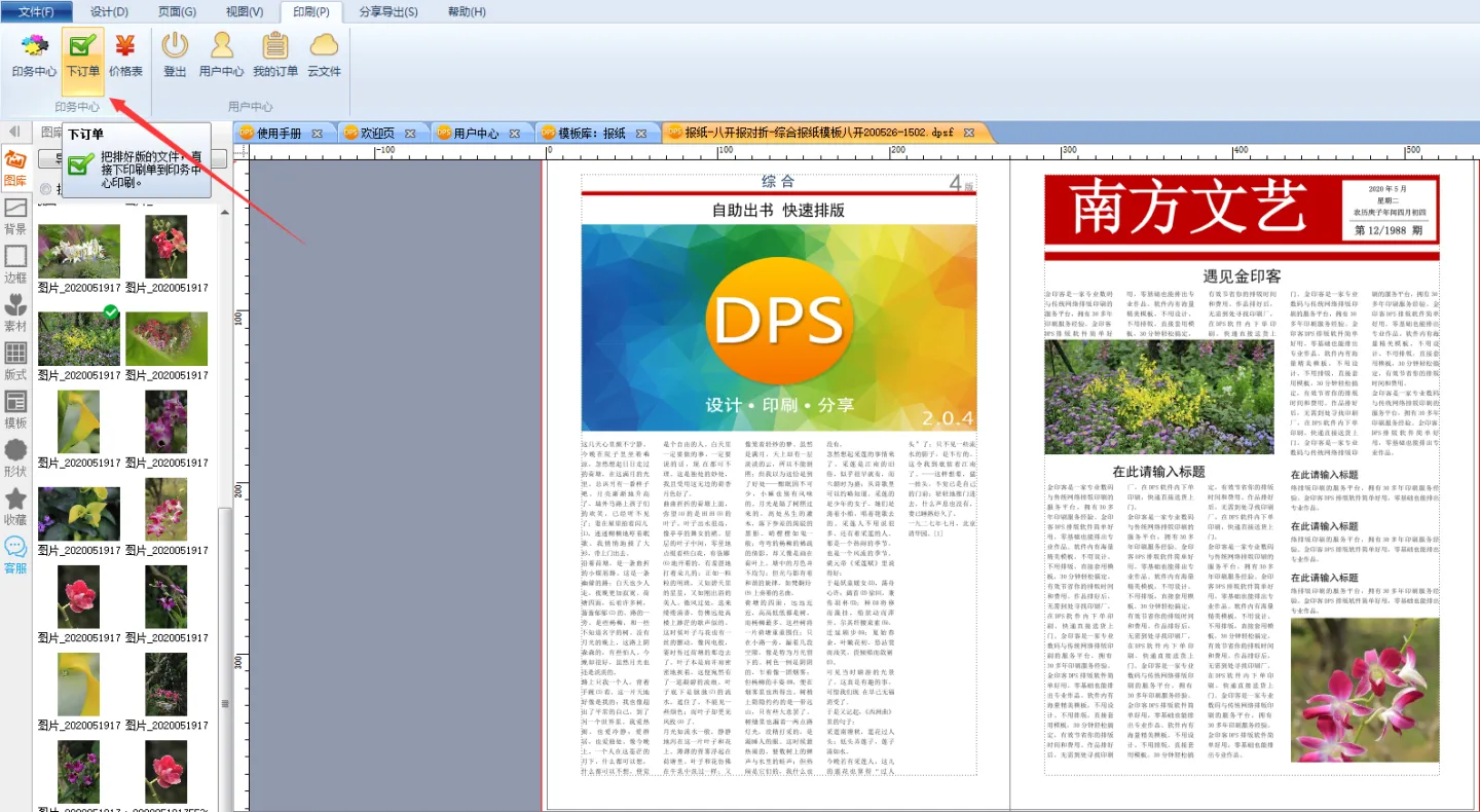 点击 “印刷”-——“下订单”,根据弹出对话框的提示,上传文件,输入收货地址,确定付款,只需3~5个工作日,报纸成品快递上门。