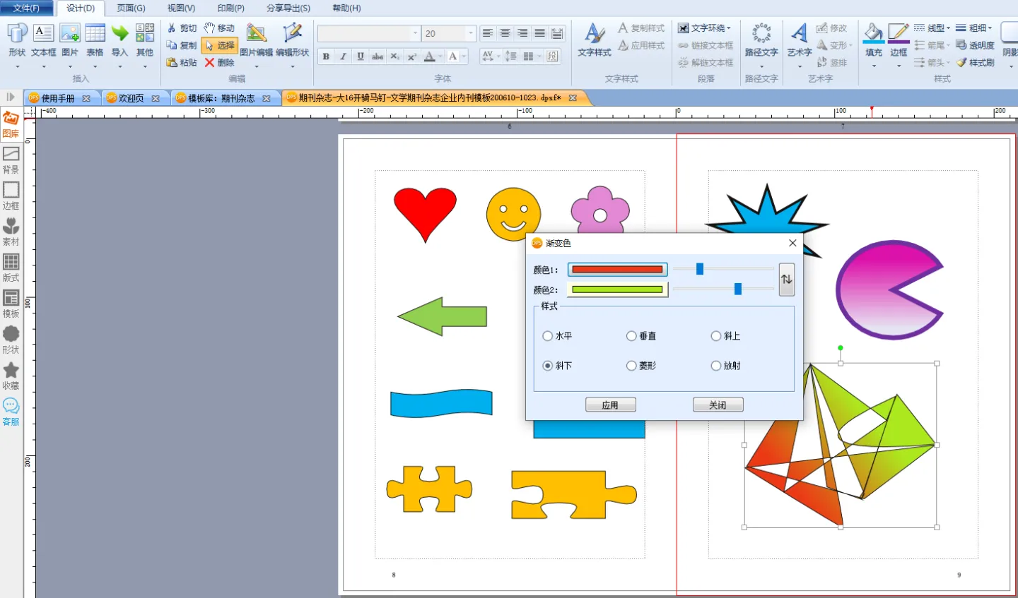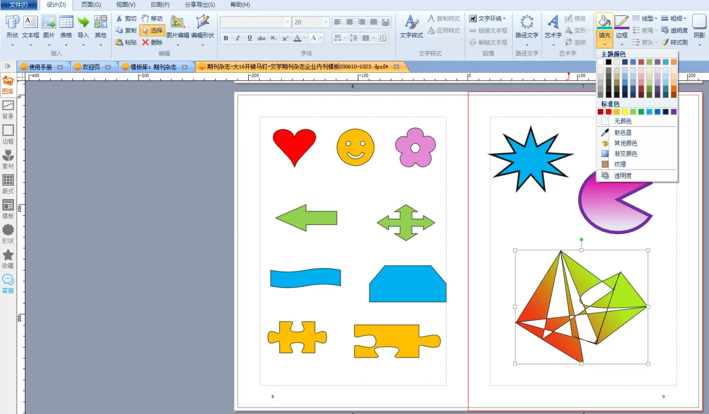用设计排版编辑软件,编辑 书籍、杂志、内刊,除了最基本的文字、图片操作之外,形状工具也是比较常用的功能,今天来了解一下金印客设计排版 编辑软件,功能强大的形状工具。
