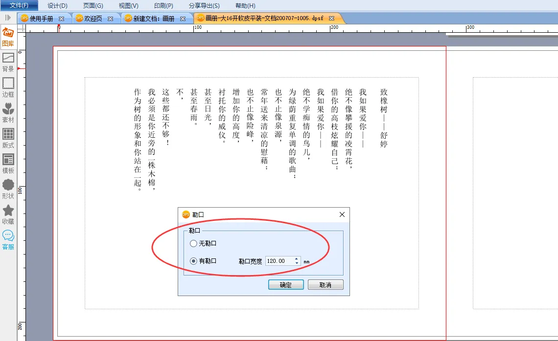 操作同上,选择[无勒口], 即可删除之前设置的勒口。