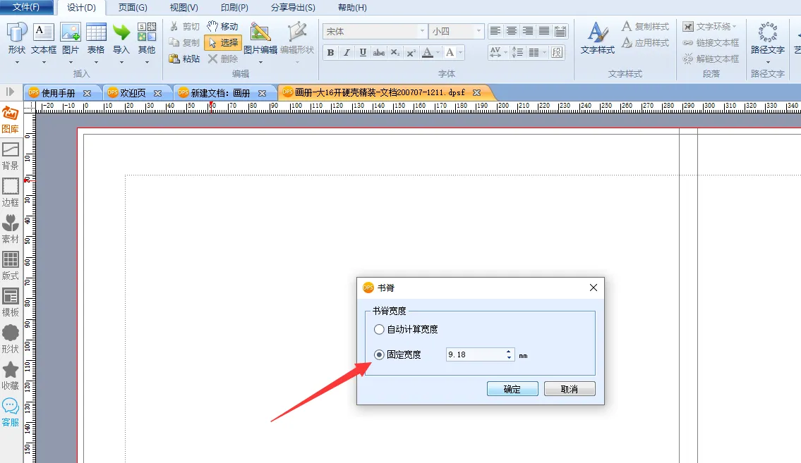 2、【新功能】新增书脊宽度设置功能,可设置自动宽度和固定宽度