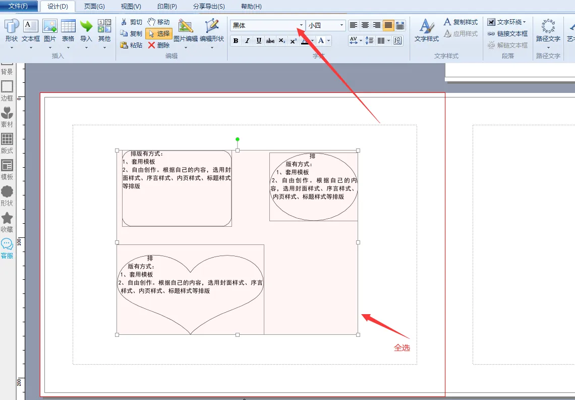 4、新增:批量修改文字格式功能,多选文本框可以批量修改字体、字号、行距等