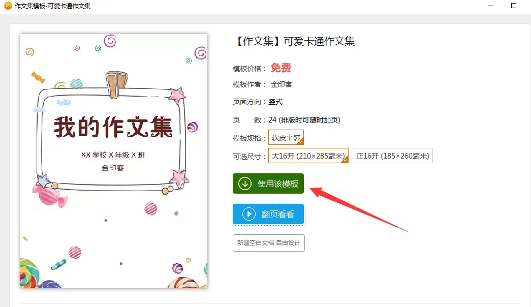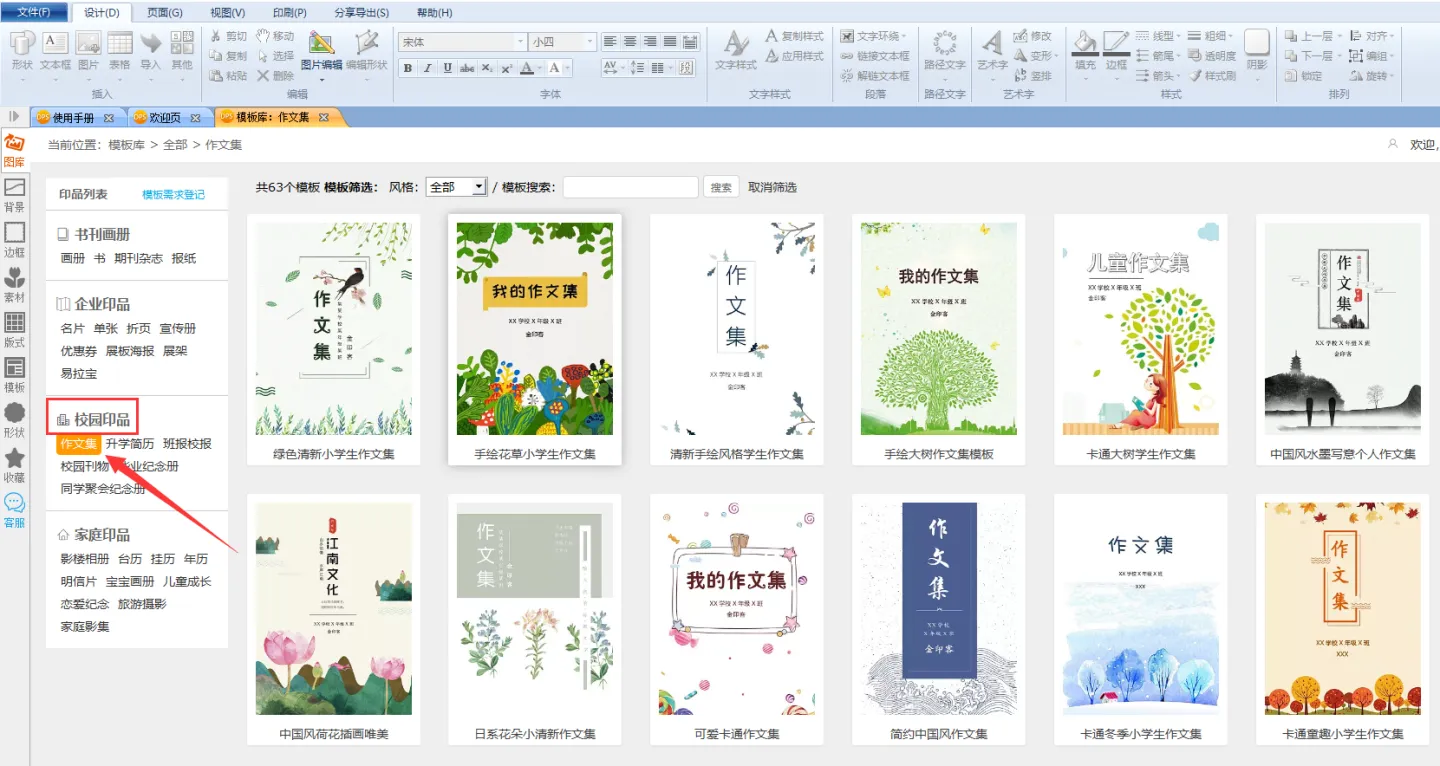 第一步:下载打开金印客软件,进入模板库,点击“校园印品”——“作文集”
