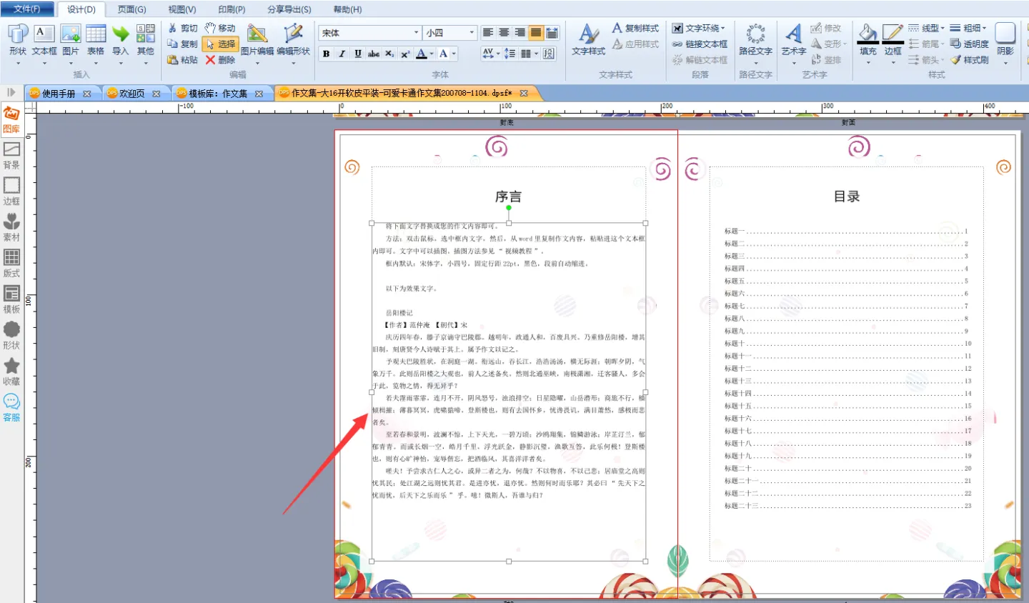 (3)根据章节需要在“后记”的前面加页,依照自己选好的文章次序,依次编辑排版。