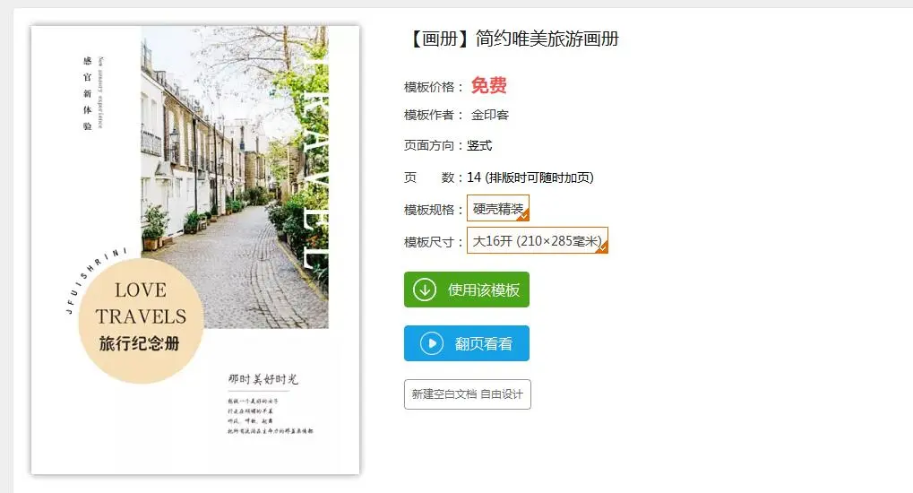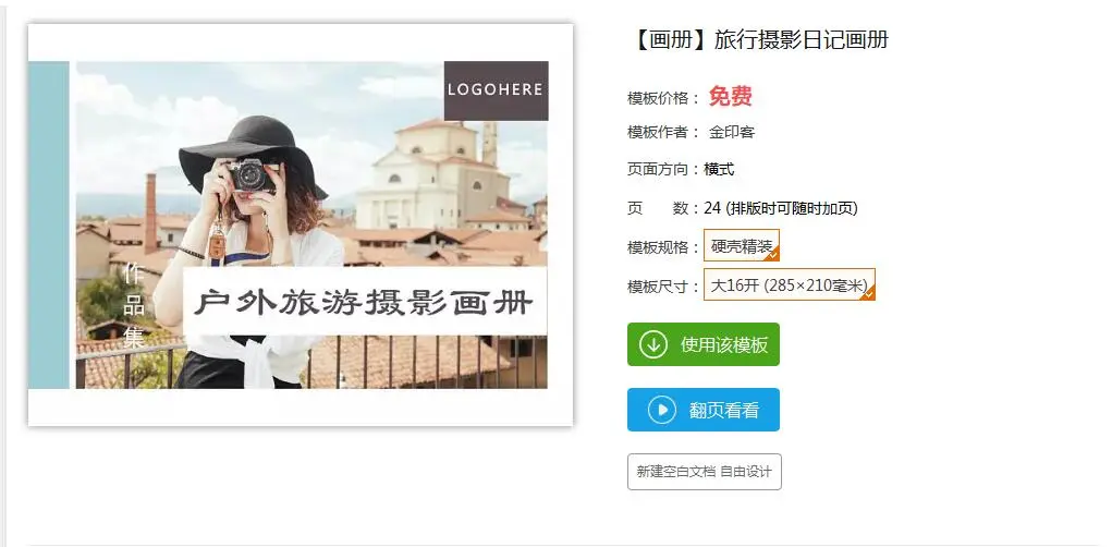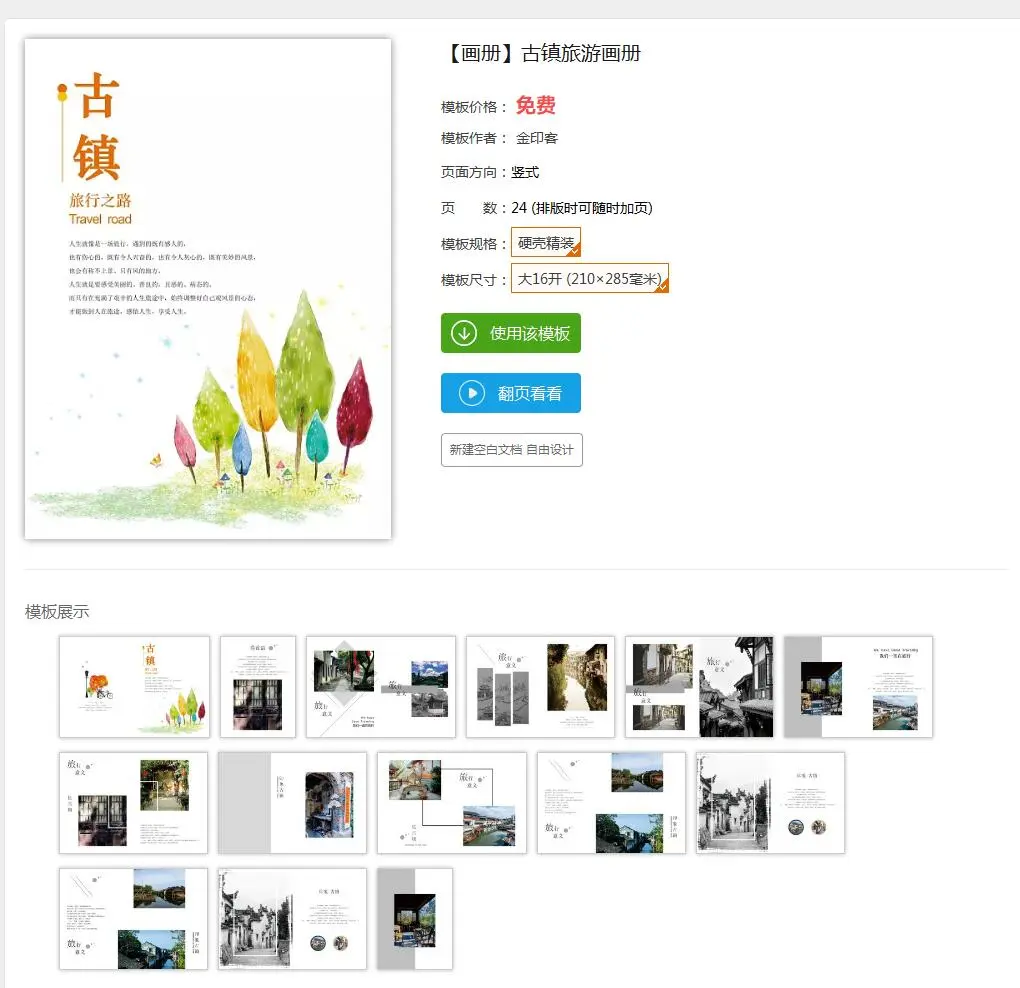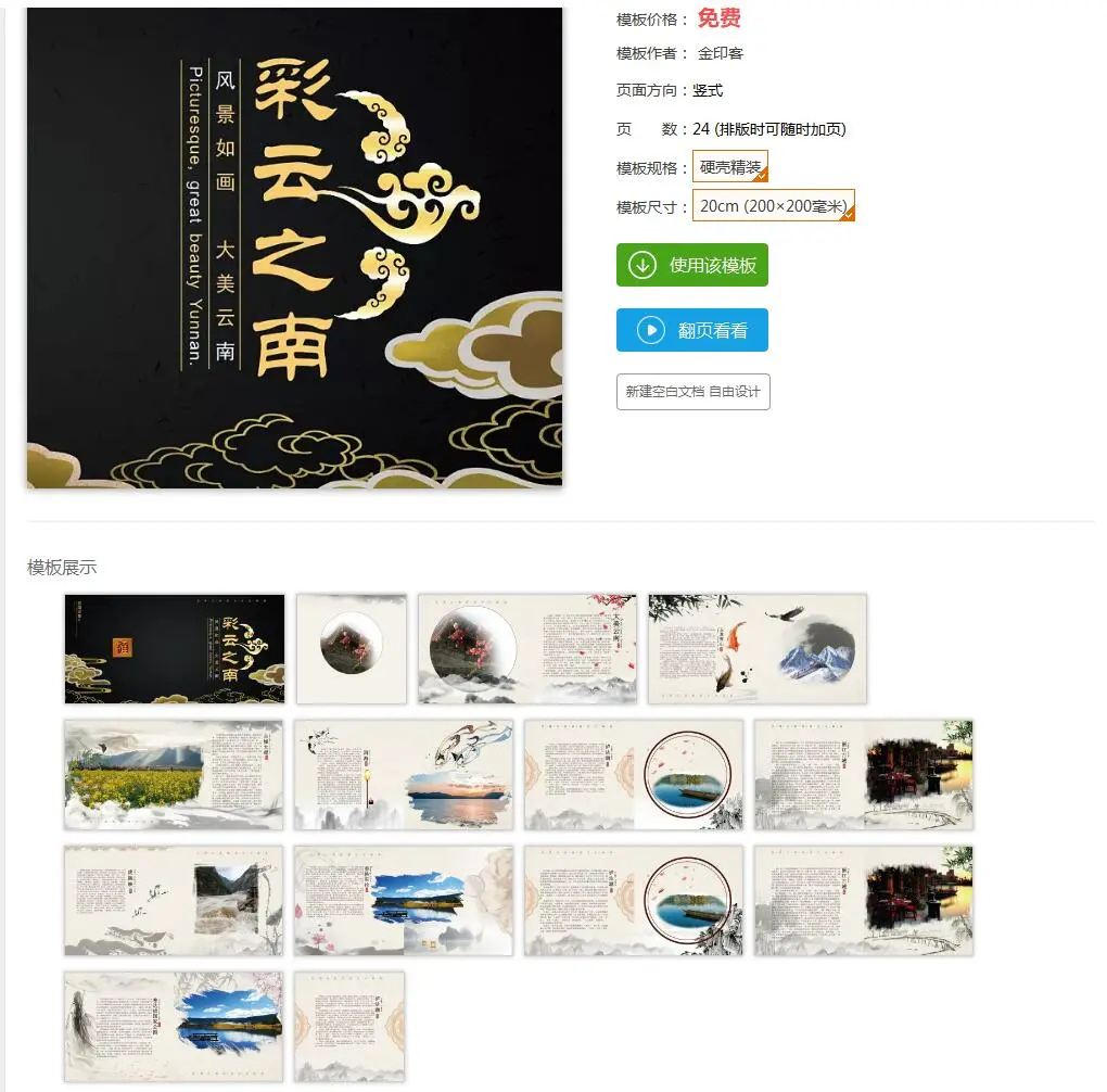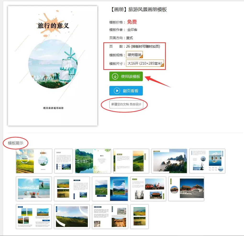 打开金印客排版软件,进入模板库,点击“旅游摄影”或“画册”,呈现大量模板。