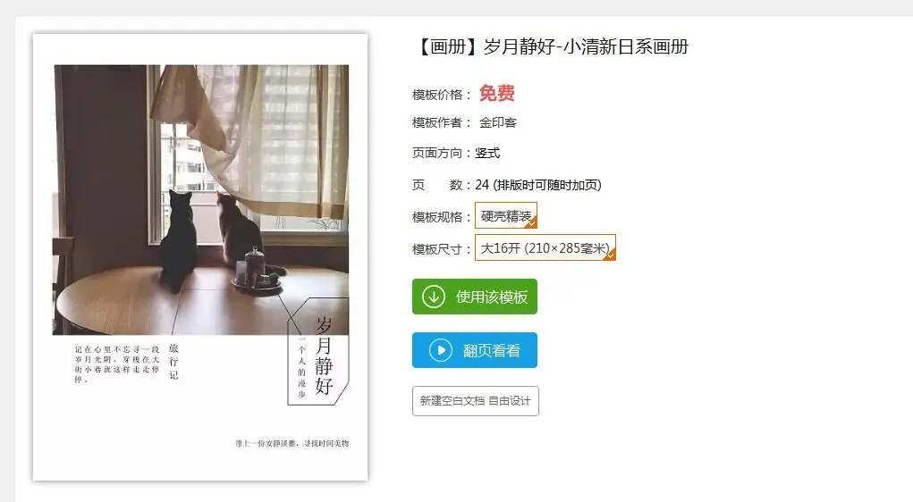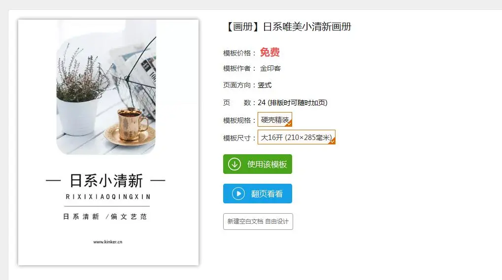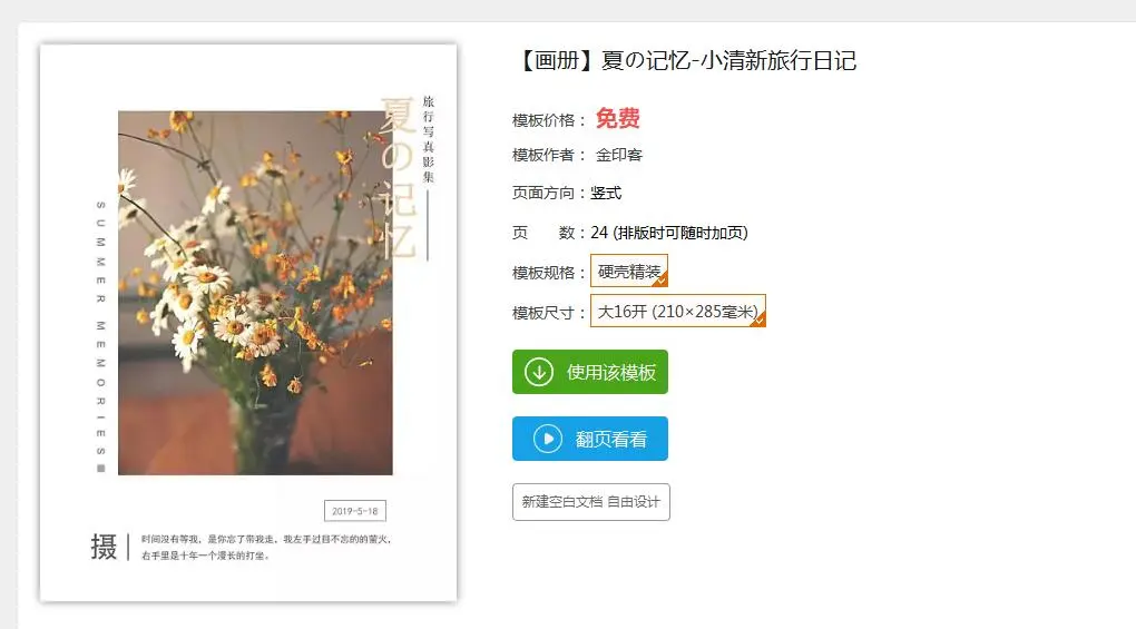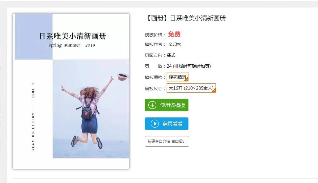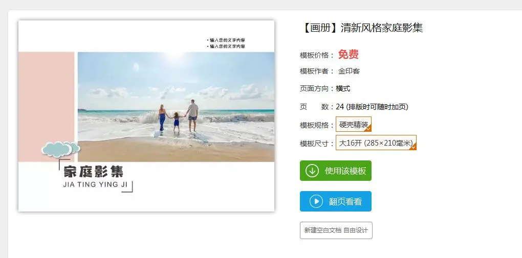 翻页看过之后,觉得还不错,确定“模板规格”和“模板尺寸”,点击“使用该模板”,即可进入编辑页面。