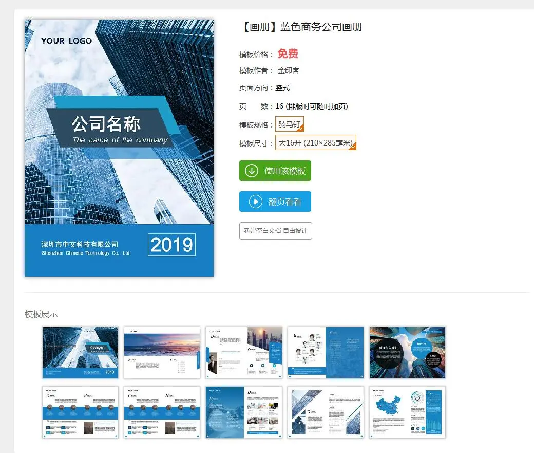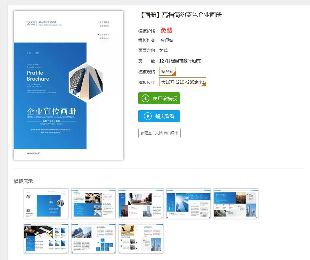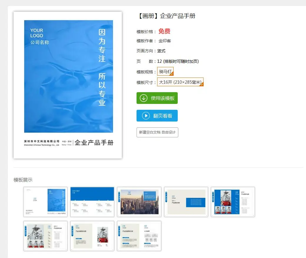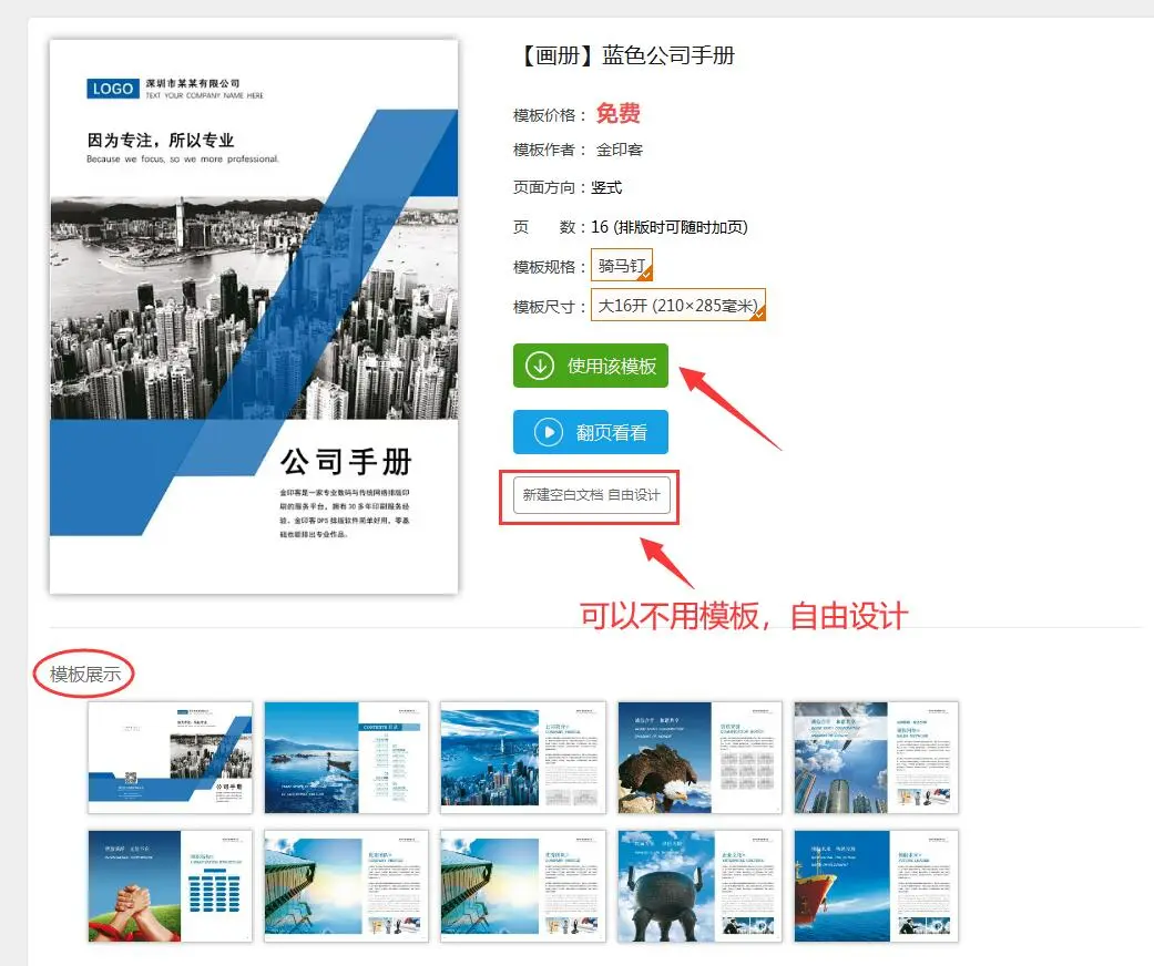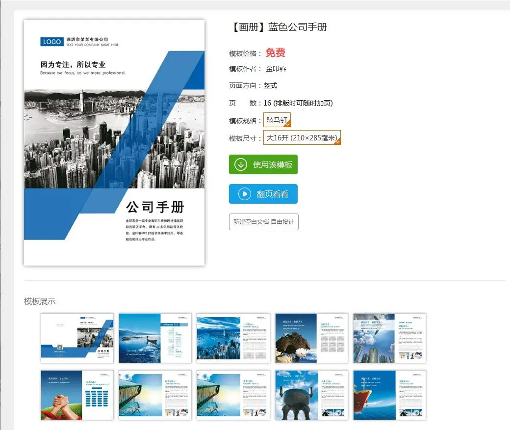 举个例子,我们要做一本公司手册,先打开金印客模板库,挑选模板。
