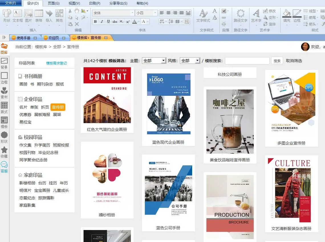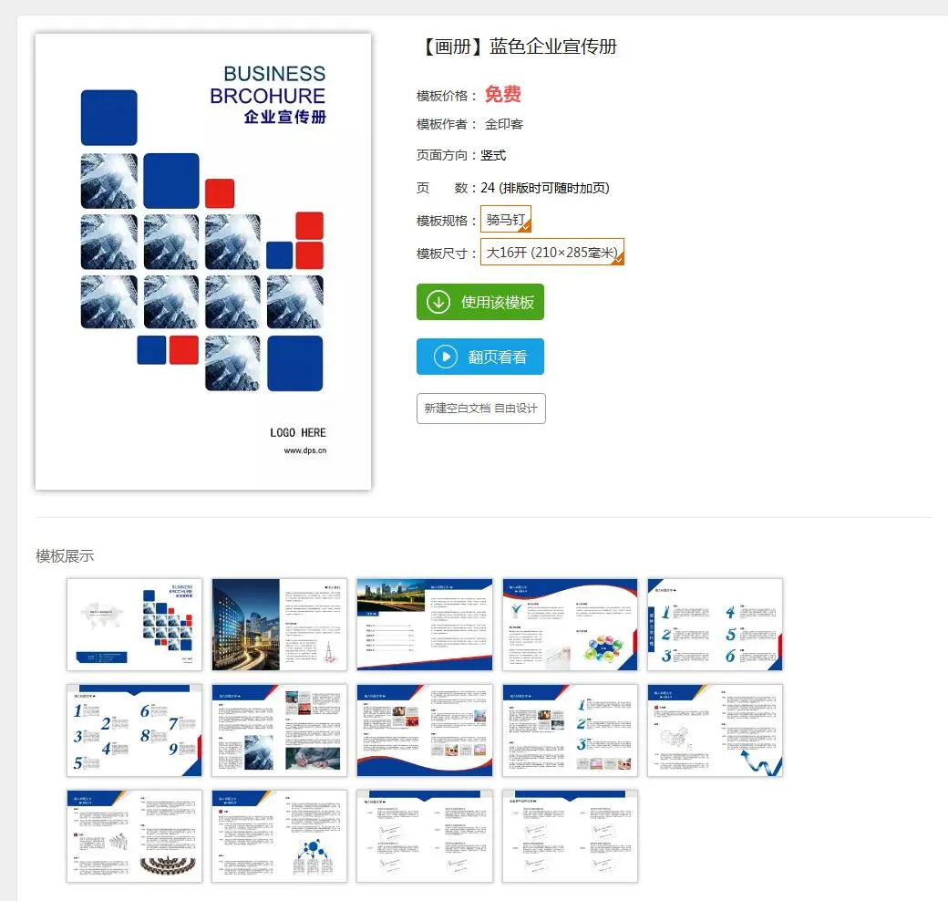 打开金印客模板库,挑选模板,可以快速编排商务系列画册、 员工手册、项目计划书。
