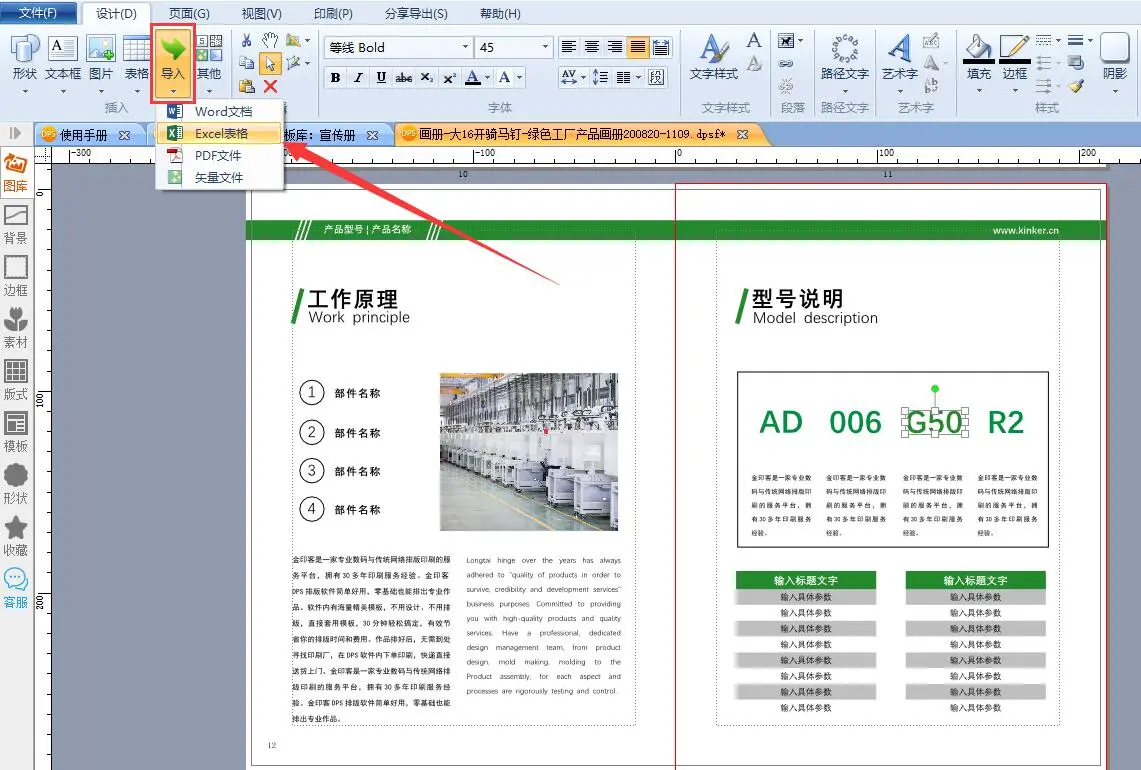 3、产品手册常会用到表格,金印客软件可以直接导入Excel文件,快速方便。