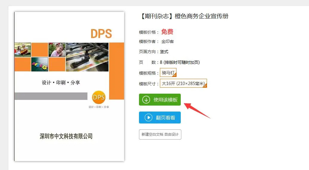 挑选模板,确定好规格和尺寸,点击“使用该模板”,页数可以在排版中根据我们的需要增减。