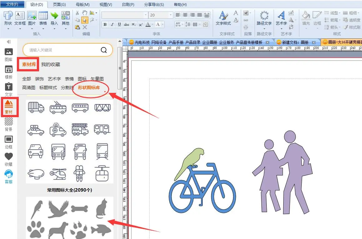 1、 修复形状库功能,使用方法:界面左侧【素材】【形状图标库】