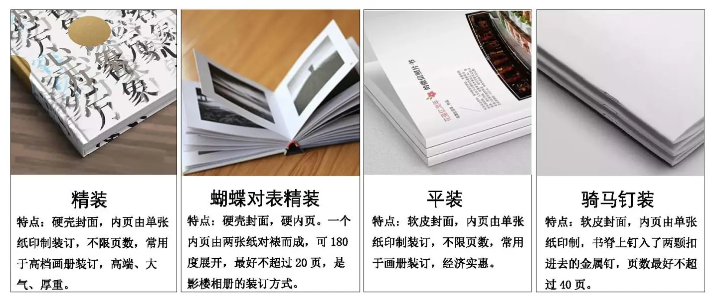 2、纪念册的装订及工艺,主要有精装、蝴蝶对表精装、平装、骑马钉装