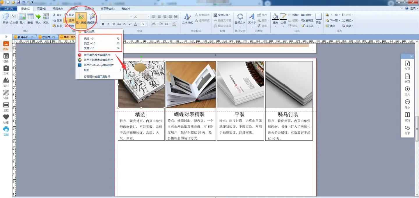 选中图片,按键盘上F2、F3键,即刻调亮图片,按F4键,即刻调暗图片。有一次现场演示,用户尖叫,说这个太太太方便快捷了,如果用PS弄,得搞半天。
