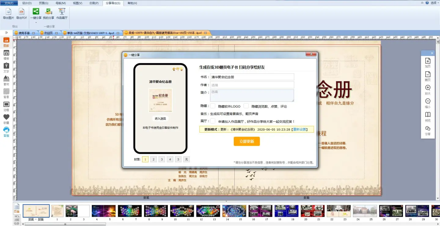 3D翻页电子书,深受用户欢迎,这次增加了一个新功能,就是给3D电子书增加了个封面、封面背景选择,同时,增加了手机模拟显示,填写的内容、选择的内容,即时显现效果。体验不错。