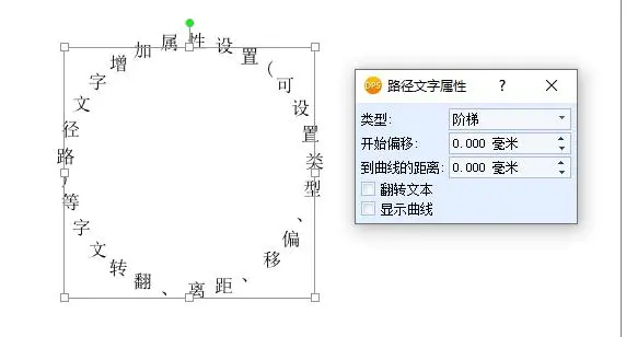 可设置类型、偏移字体、改动字体到曲线的距离、翻转文字、显示字体等