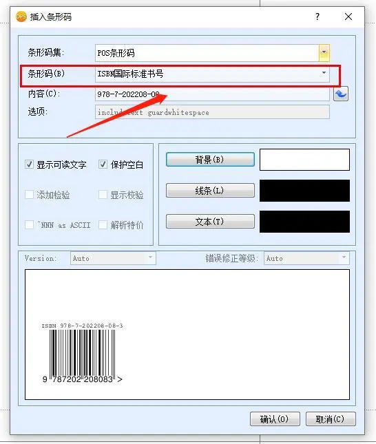 插入条形码时的默认ISBN国际标准书号,更加方便快捷