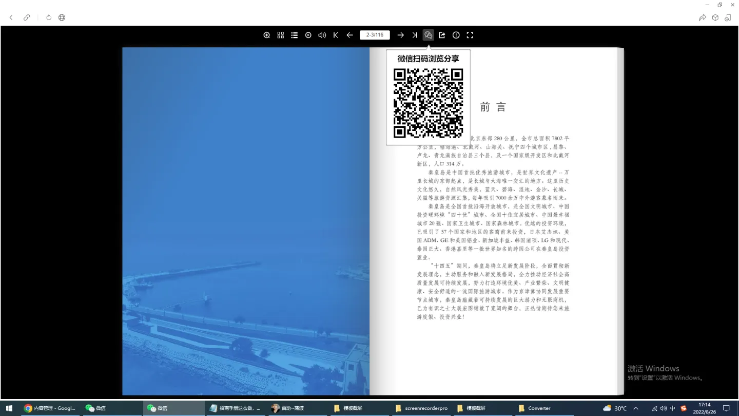 这次秦皇岛市招商手册制作成了3D电子翻页的形式,直接挂到网上,这保持了与纸质版本的完全一致,给读者以亲切的体验,更重要的是,省得专门的网页制作,实现手机快速传播,大幅拓宽了阅读群体。